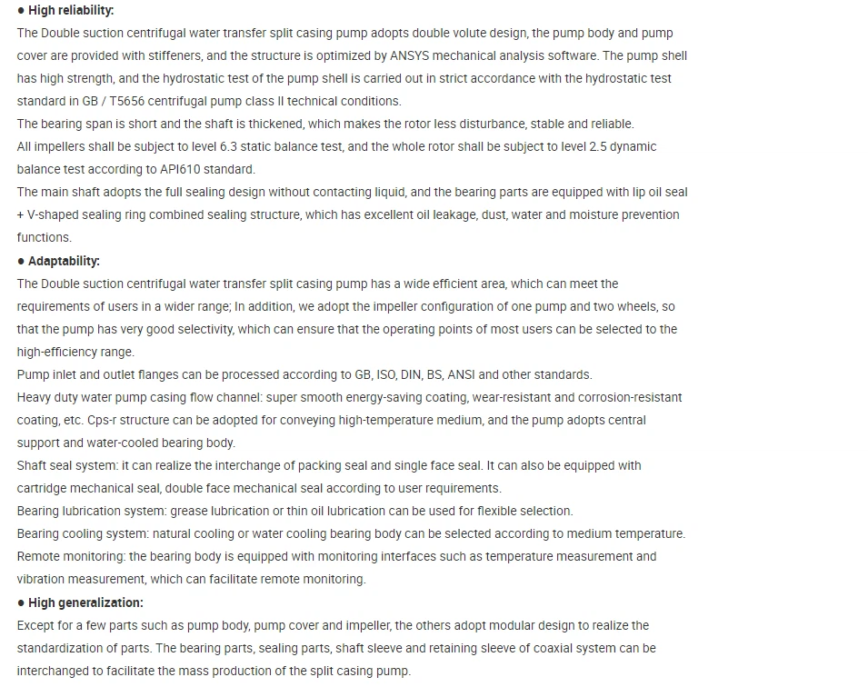 مصنوعات کا نام: ڈبل سکشن سینٹریفیوگل واٹر ٹرانسفر سپلٹ کیسنگ پمپ